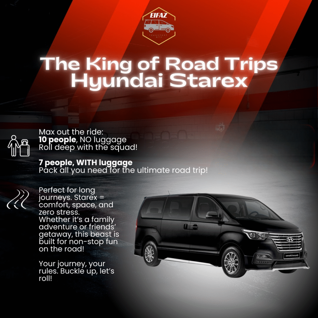 Butuh lebih banyak ruang dan kenyamanan untuk perjalanan jauh atau keluarga besar? Starex adalah pilihan terbaik Anda — lapang, bergaya, dan super mulus untuk perjalanan tanpa batas.
